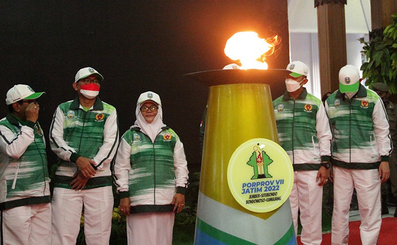 Api obor Porprov Jatim VII 2022 diletakan di Pendopo Aryo Situbondo, Selasa, 21 Juni 2022