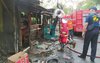 KEBAKARAN. Petugas PMK saat melakukan pemadaman dan pembasahan di warung dan bengkel, milik Mahfud, Jalan Bengawan Solo, Kelurahan Jrebeng Wetan, Kecamatan Kedopok, Kota Probolinggo yang ludes terbakar, Senin 17 Mei 2021. Foto: Zulkiflie.