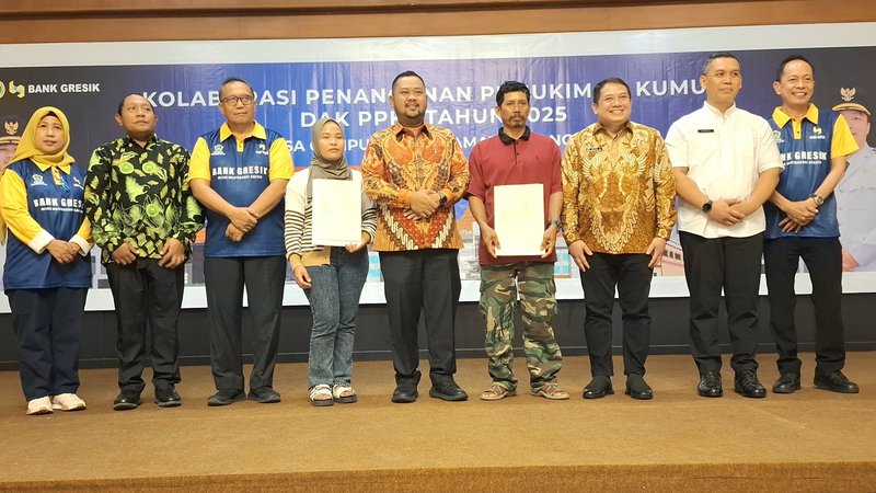 "Karena itu, Pemkab Gresik berkolaborasi bersama Bank Gresik, Ikatan Pejabat Pembuat Akta Tanah (IPPAT) dan Kantor ATR/BPN hadir. Melalui program DAK PPKT Kementrian Perumahan dan Kawasan Permukiman serta Kementrian PU, dana DAK dialokasikan di Desa Campurejo sebesar Rp24,7 milliar," ujar Gus Yani.